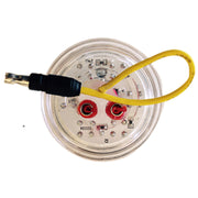 This light features a built-in two prong female plug in the back, which powers the red diodes. There is an additional single bullet plug, which is the hot wire for the white function. Mounts in a standard 2" round rubber grommet (not included).