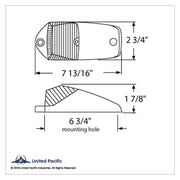 Measures 8" long x 2.5" wide, with 6.5" between mounting holes. This is a single function light, hard wired with two plain wires. Sold SINGLE. These lights function at 12 volts.