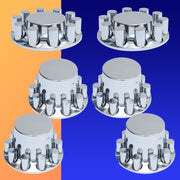 Full set of 6 axle covers includes 2 steers (front) and 4 drives (rear) and all 60 threaded 33mm cylinder lugnut covers.