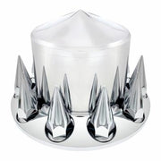 Chrome plastic pointed rear axle cover w/33mm extra-long spike lug nut covers