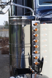 Fits Peterbilt trucks with 15" diameter air breather cans only. Lights sold separately. Fits on the front of the breather cans - includes driver's and passenger's side brackets.