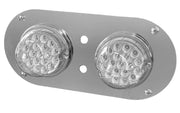 Peterbilt 359/379/389 or Kenworth W900L stainless steel above door dome light plate w/2 watermelon light holes, with 2 switch holes