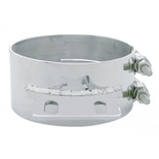 This extra-wide clamp is part of the Dynaflex exhaust system. The width of these clamps is essential to creating the illusion of a single-piece pipe, as they hide the seams between the center spool and elbow or top piece.