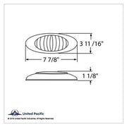 This extra-large light measures 7-7/8" long by 3-11/16" tall by 1-1/8" deep. It is a dual function light, meaning it can be used as both a marker and a turn signal. It is hardwired with a 3-pin offset female plug, attached to about 6" of wire. This is a flush mount light. The chrome bezel snaps onto the base, covering the mounting holes.