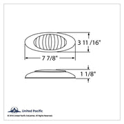 This extra-large light measures 7-7/8" long by 3-11/16" tall by 1-1/8" deep. It is a dual function light, meaning it can be used as both a marker and a turn signal. It is hardwired with a 3-pin offset female plug, attached to about 6" of wire. This is a flush mount light. The chrome bezel snaps onto the base, covering the mounting holes.