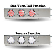 Stainless steel mudflap hanger w/6 round Dual Revolution 4" Red/White LED lights - 3-3/4" Bolt hole spacing