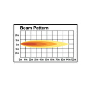 This is a single function light with a spot-light beam pattern, measuring about 900 lumens, and with a range of approximately 100 meters forward and 10 meters side-to-side. Compatible with 10 to 30 volt systems, including 12 volt and 24 volt. Approximately 15 watts.