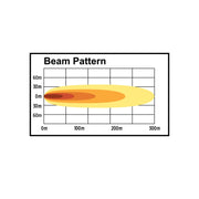 This is a single function light with a spot-light beam pattern, measuring about 1260 lumens, and with a range of approximately 950 feet forward and 100 feet side-to-side. Compatible with 10 to 30 volt systems, including 12 volt and 24 volt.