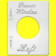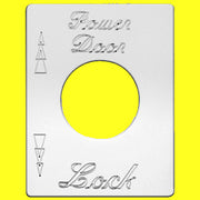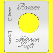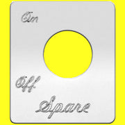 Imported. Each switch plate has a unique design, including engraved script label, position indicators, or a small image.