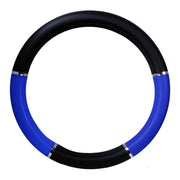 18" deluxe steering wheel cover - black and blue w/chrome trim