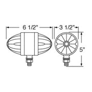 Measures 6-1/2" overall width, 5" overall height. Lights are 3.5" diameter, cab light-style lights. Sold SINGLE. This is a heavy light, so we recommend using thick mounting brackets for installation.