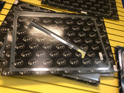This windshield trim is wider in the middle and narrower along the outside edges. Three-piece kit includes two sides and one center trim. Double-stick mounting tape included. Fits all year model Peterbilt 379, 386, 388, and 389 trucks.