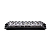 Flush mount, high power LED with 11 flash patterns, selectable for synchronized and alternating. Slim profile and surface mounted for easy installation. Rugged cast aluminum construction resists corrosion and vibration. IP67 rating. Dual-voltage 12VDC-24VDC.