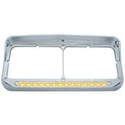 Includes amber (clear lens) 14 diode LED lower dual function marker/turn signal light and mounting screws for light. Existing headlight bezel bolts will fit this replacement bezel.