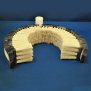 This unique brush is amazing at cleaning your exhaust stacks. The bristles are strong but pliable enough to get around smaller stacks, generally 4" to 6" diameter. The brush has two handle holes, one straight and one angled, making it easy to clean your straight, curved, or bull hauler stacks. Handle not included - see related items for compatible handles.