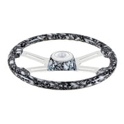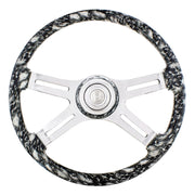 "White Skulls" painted wood 18" steering wheel w/chrome spokes - 3 hole style